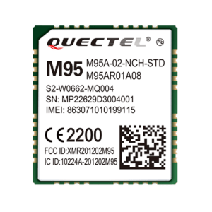 Módulo GSM Quectel M10, instalado en tarjeta con conector macho de 60pines (30×2), espacio entre pines de 0.05″ (1.27mm).