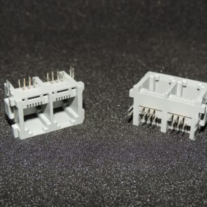 Conector hembra doble RJ-11 para impreso de 6 pines cada uno.