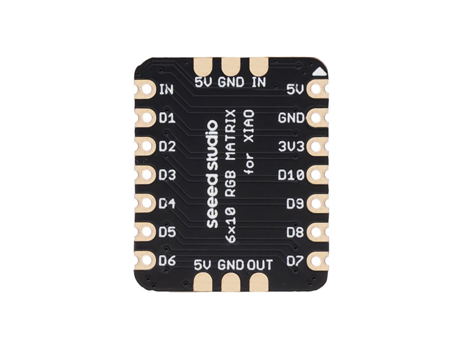 La Matriz RGB 6×10 para XIAO es una placa de extensión compacta y visualmente impactante diseñada para las placas de la serie Seeed Studio XIAO (incluyendo RP2040, ESP32 y otros modelos compatibles). Con 60 LEDs WS2812B direccionables individualmente dispuestos en una matriz de 6 filas × 10 columnas, esta placa te permite crear efectos luminosos, animaciones, notificaciones visuales y proyectos interactivos llenos de color y movimiento.