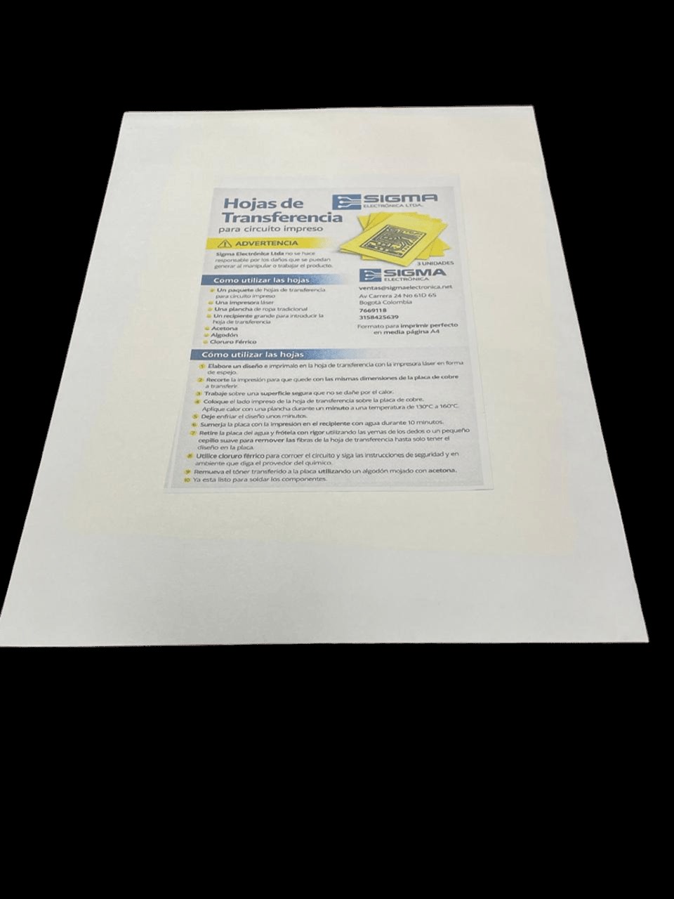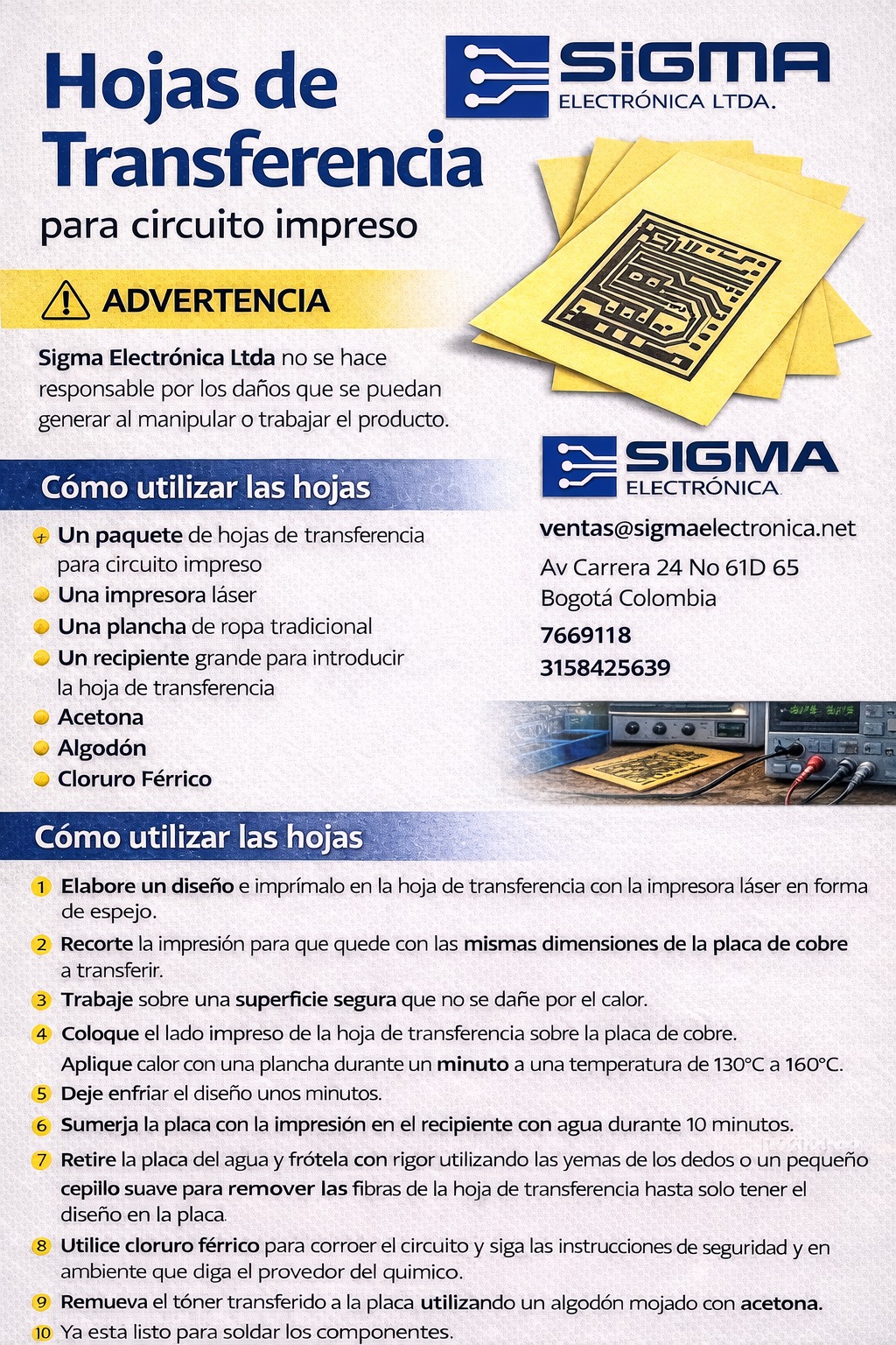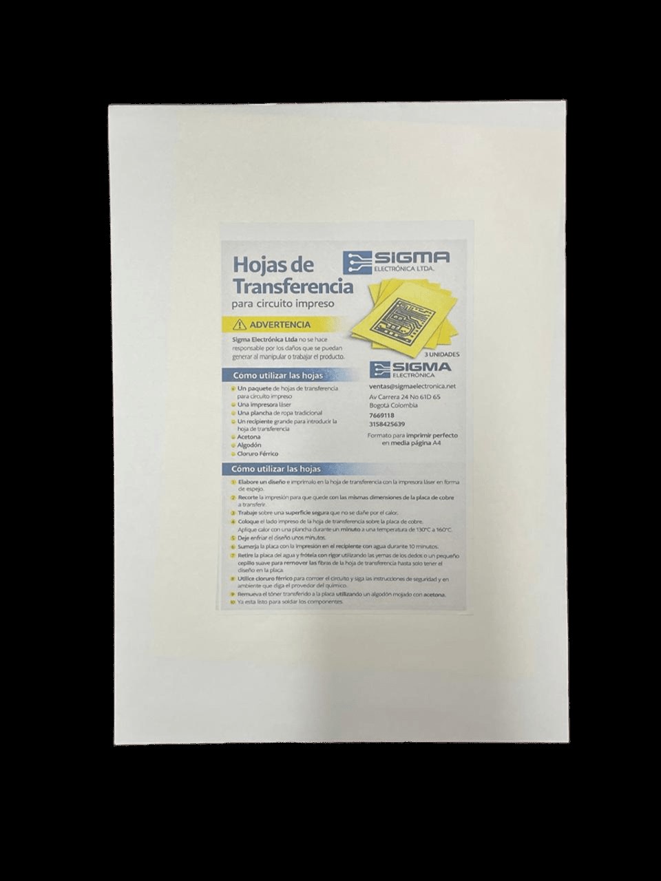 Juego de 3 hojas de transferencia para circuitos impresos. Haga sus propios circuitos impresos con acabado profesional y con excelente precisión, utilizando su impresora láser.