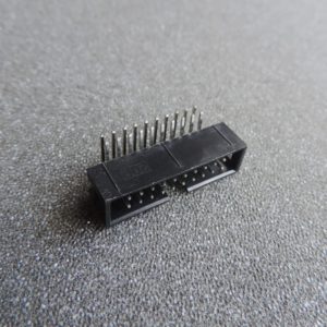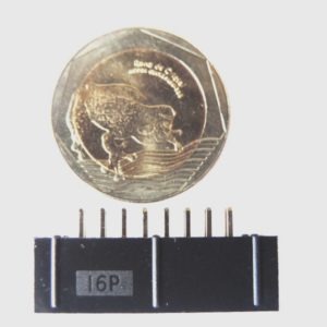 Conector IDC , IDT o conector por desplazamiento del aislante de 16 pines (8×2). Conector eléctrico diseñado para ser conectado mediante cable Ribbon aislado mediante un proceso de conexión selectivo a través de aislamiento por medio de cuchillas afiladas, evitando la necesidad de pelar la cubierta del cable antes de conectar. El conector se Poncha en frío a la cinta de datos, logrando una conexión hermética sumamente fiable. y puede insertarse en zócalo dedicado o en regleta doble tipo Macho.