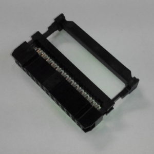 Conector IDC , IDT o conector por desplazamiento del aislante de 20 pines. Conector eléctrico diseñado para ser conectado mediante cable Ribbon aislado mediante un proceso de conexión selectivo a través de aislamiento por medio de cuchillas afiladas, evitando la necesidad de pelar la cubierta del cable antes de conectar. El conector se Poncha en frío a la cinta de datos, logrando una conexión hermética sumamente fiable. y puede insertarse en socalo dedicado de 20 pines o en regleta doble tipo Macho.