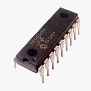 Microcontrolador de Microchip en empaque tipo DIP de 28 pines incluye Power-on reset, Power-up Timer (PWRT), Timer de 8bits y 16 bits, conversor análogo digital de 8 bits, puertos dedicados I2C y UART.
