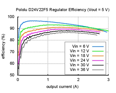 • Salida fija de 5 V con corriente continua de hasta ~2.5 A (dependiendo de condiciones)