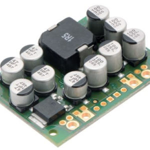 Esta potente reductor (o buck) regulador de conmutación síncrono toma una tensión de entrada de hasta 50V y eficientemente la reduce a 3.3V. La placa mide solo 25.4 mm × 25.4 mm, ofrece corrientes de salida continuas típicas entre 4.5A y 9.5A, dependiendo del voltaje de entrada, lo que la hace muy adecuada para alimentar cargas moderadas a grandes. Se puede usar una entrada de habilitación opcional con un umbral de corte preciso para poner el regulador en un estado de baja potencia con un consumo de corriente de 10µA a 20µA por voltio en VIN. El regulador también cuenta con protección de voltaje inverso y una salida de buena potencia que indica cuándo el regulador no puede mantener adecuadamente el voltaje de salida.