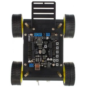 - La plataforma integra los elementos necesarios para programar: Seguidor de Linea, Sensor de luz ambiente, luces LED, Sensor de ultrasonido, Buzzer, interface I2C, Tornillos de expansión y mucho más.
