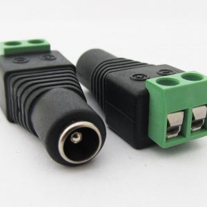 Conector hembra de alimentación de CC de aspecto simple y profesional con modelo universal adecuado para varios adaptadores o fuente de alimentación. Se utiliza para conexiones de alimentación de circuito cerrado de televisión, alimentación de tiras de LED, entre otros.