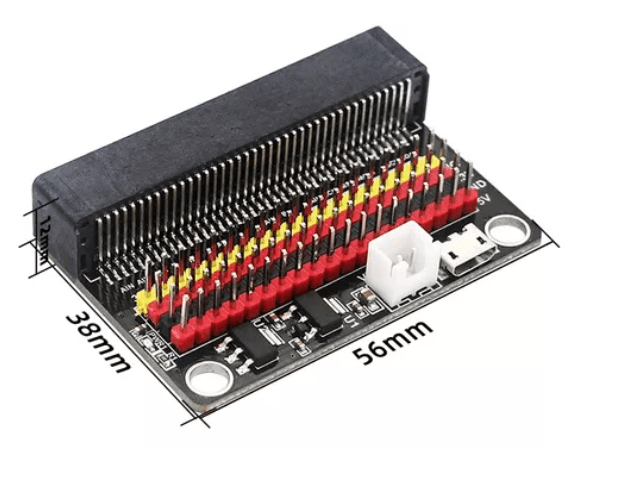 Complemento ideal para la tarjeta de desarrollo MICRO:BIT que permite disponer de los GPIO de la tarjeta en una regleta convencional ideal para trabajarla con Cables tipo Jumper.