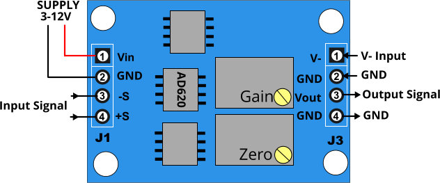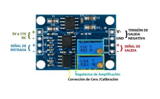 Está diseñado para amplificaciones de instrumentación con rango de ganancia de 1.5-1000 veces. Está equipado con chip amplificador AD620 de instrumentación, soporta ajuste de punto nulo, salida de voltaje negativo y capacidades de filtrado de ruido para obtener baja distorsión y una señal de alta frecuencia, ideal para una pequeña amplificación.