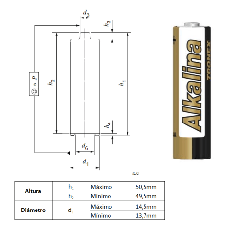 - TIPO: Pila alcalina AA.