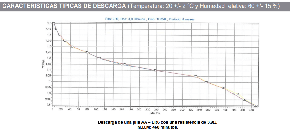 - M.D.M 1: 7,7 horas en 3.9 ohm con una frecuencia de descarga de 1h/24h.